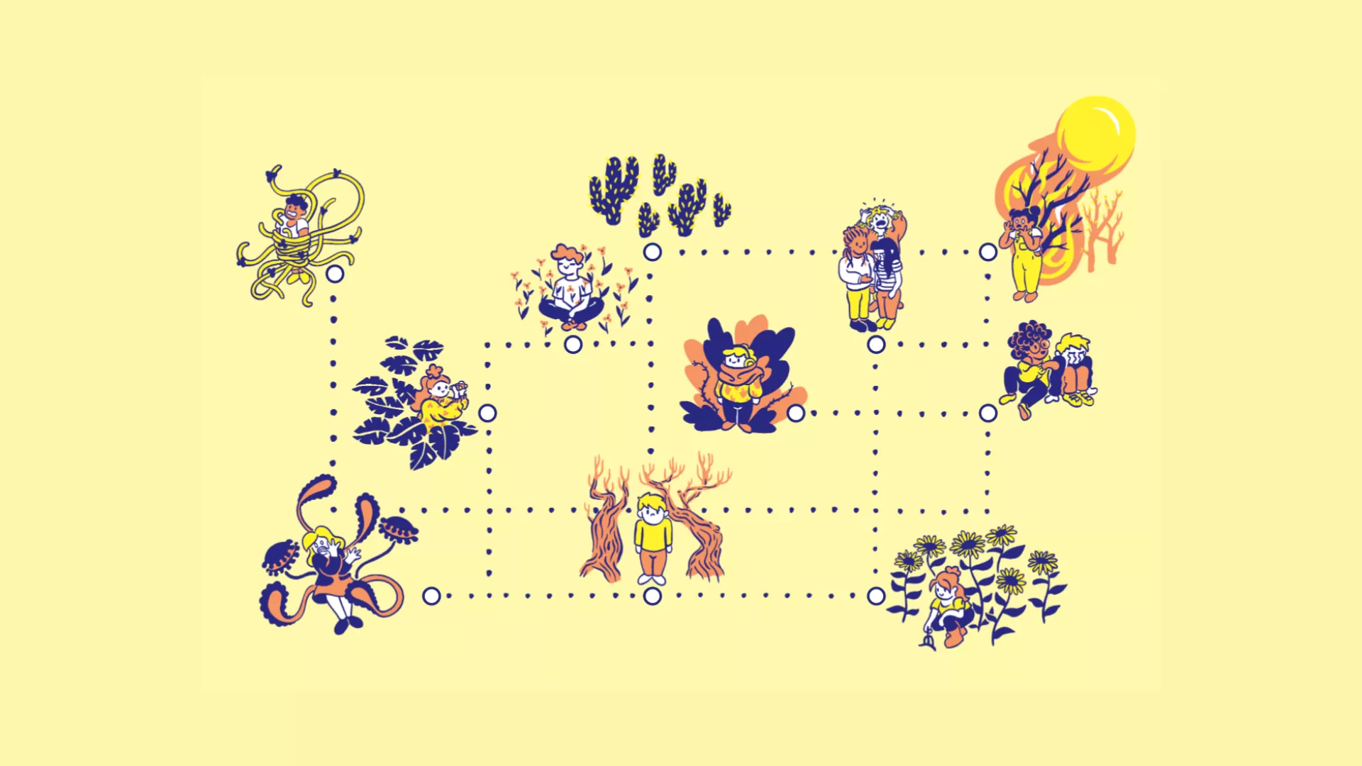 Cette exposition a été élaborée en collaboration avec des jeunes. Elle leur offre des pistes pour prendre soin de leur bien-être mental via une mission : aider un-e ami-e en difficulté. L'exposition est mise gratuitement à disposition des organisations qui souhaitent l'accueillir.