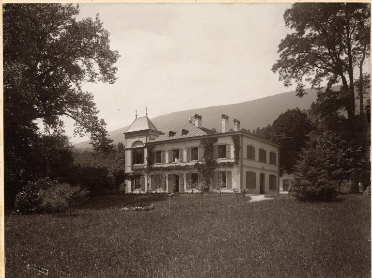 "Hospice cantonal de Perreux à vol d'oiseau", par Gustave Borel, 1910. [AEN, 1PERREUX-Ico]