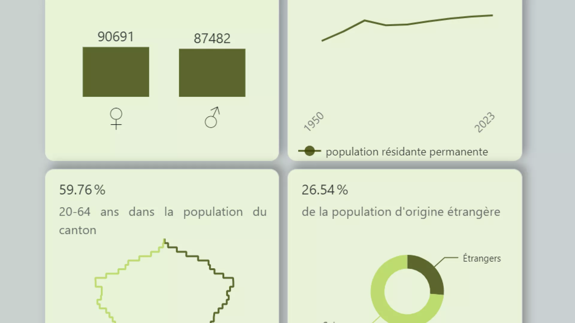 On observe une augmentation des titulaires d'une autorisation de séjour (permis B : +1128), des personnes possédant un permis d'établissement (permis C : +220) ainsi que de celles au bénéfice d'un permis de courte durée (permis L : +59). S'agissant du nombre de requérant-e-s d'asile, il reste stable (+12). Les titulaires d'une admission provisoire (permis F) sont légèrement moins nombreux qu'à fin 2022 (-53).