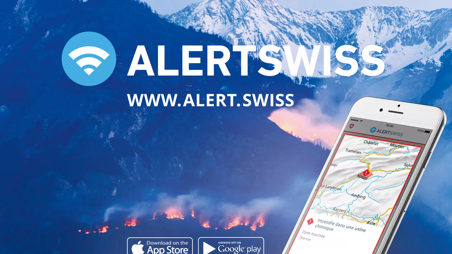 Grâce aux services d'Alertswiss, la population peut mieux se préparer aux catastrophes et situations d'urgence. Elle est invitée à utiliser ces canaux d'alarme et d'information et à installer l'application Alertswiss sur les smartphones employés quotidiennement. Alertswiss est disponible gratuitement pour les systèmes d'exploitation Android et IOS via le Google Play Store ou l'App Store d'Apple.
