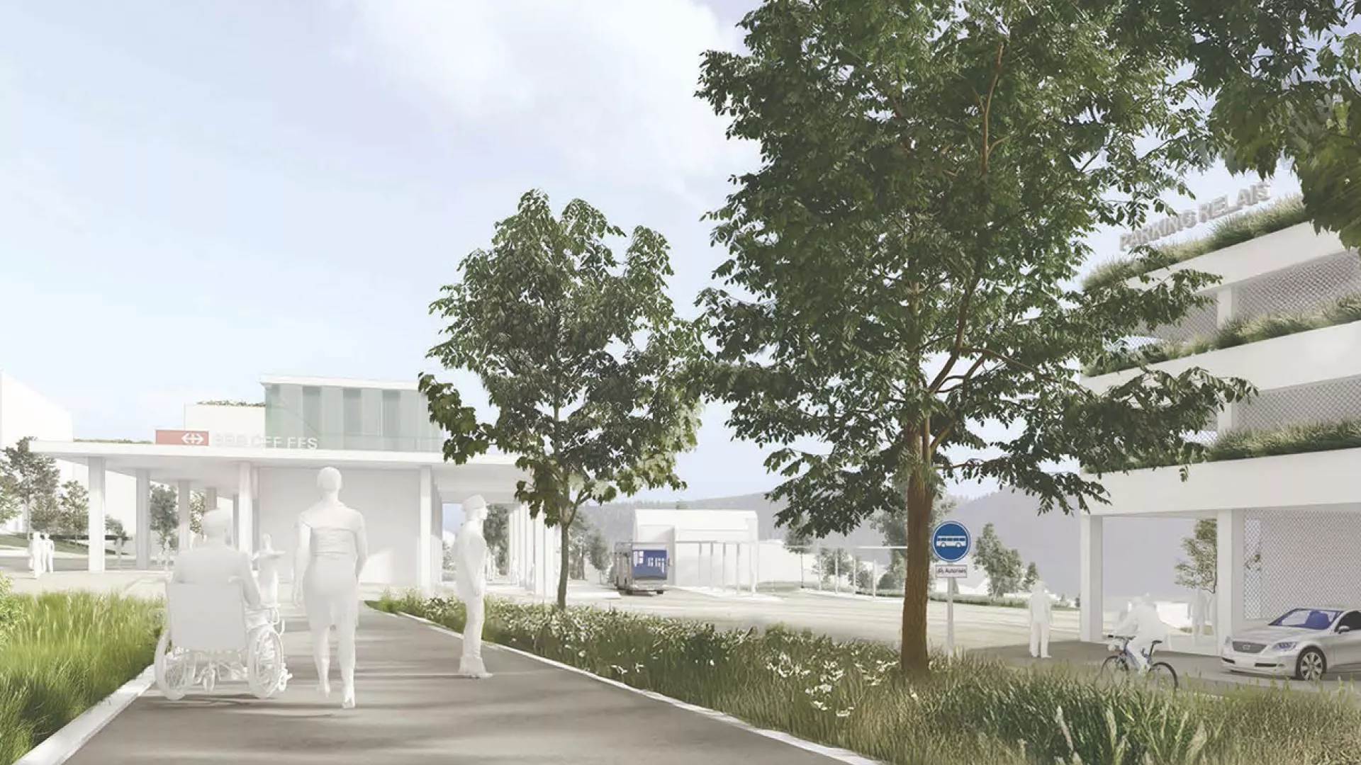 Illustration : vue de la future gare de Cernier (crédit : bureaux KCAP et Metron).