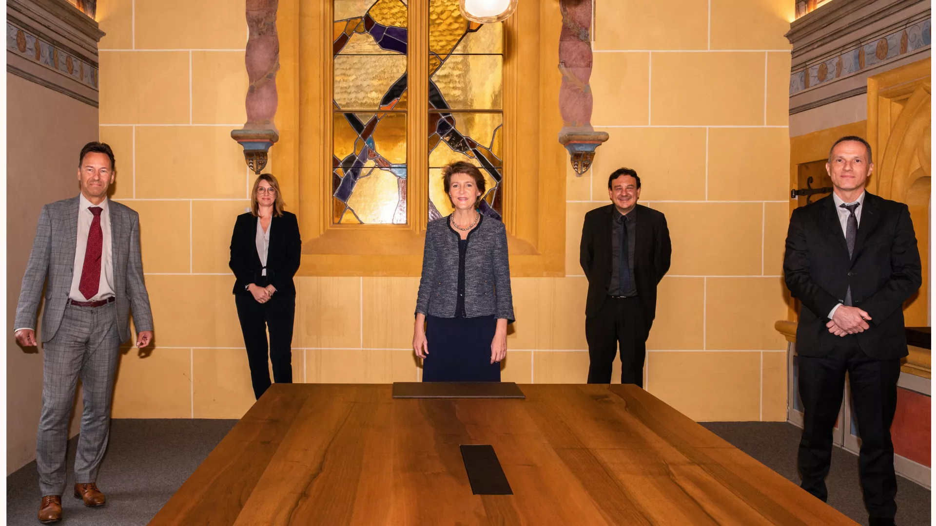 En cette veille du 1er mai, la présidente de la Confédération, Madame Simonetta Sommaruga, a rencontré une délégation du Conseil d’État au siège du gouvernement. Cette rencontre suivait sa visite du Home Les Charmettes à Neuchâtel, où elle a souhaité échanger avec la direction et le personnel. Les échanges avec la délégation du gouvernement ont porté sur la situation sanitaire et économique du canton dans le contexte de la pandémie Covid-19.