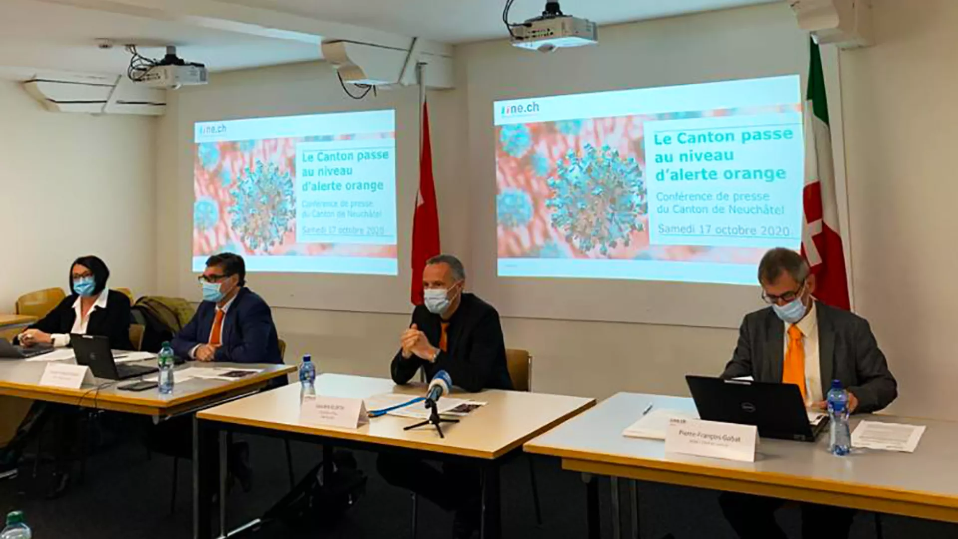 Au vu de cette évolution, l'organisation de gestion de crise et de catastrophe du Canton de Neuchâtel (ORCCAN) a proposé au Conseil d'État d'élever le niveau d'alerte de jaune à orange dès ce samedi 19 octobre 2020.