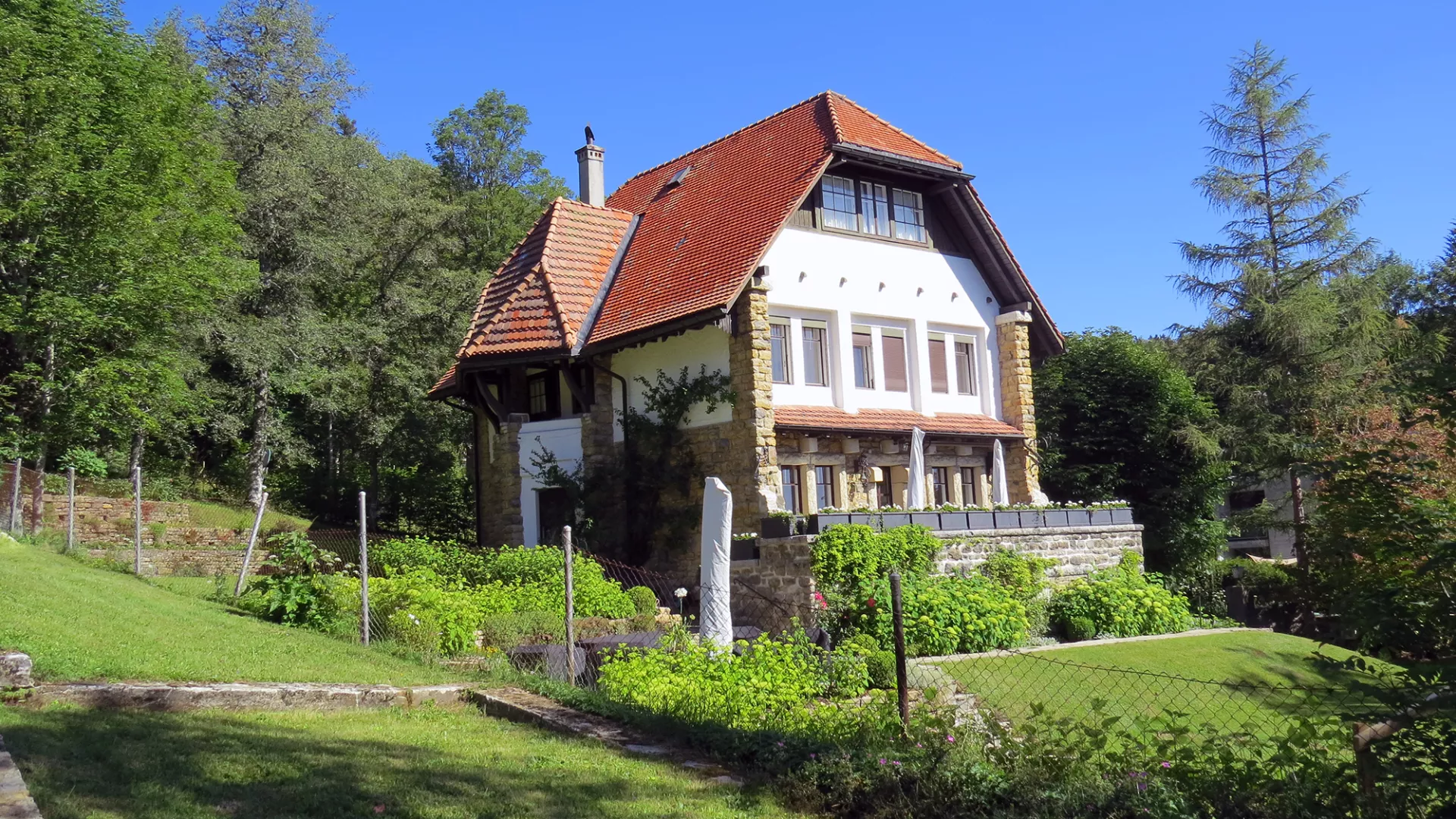 Photo: la villa Jaquemet à La Chaux-de-Fonds, précieux témoignage du Heimatstil neuchâtelois et de l’Art sapin (crédit: OPAN).
