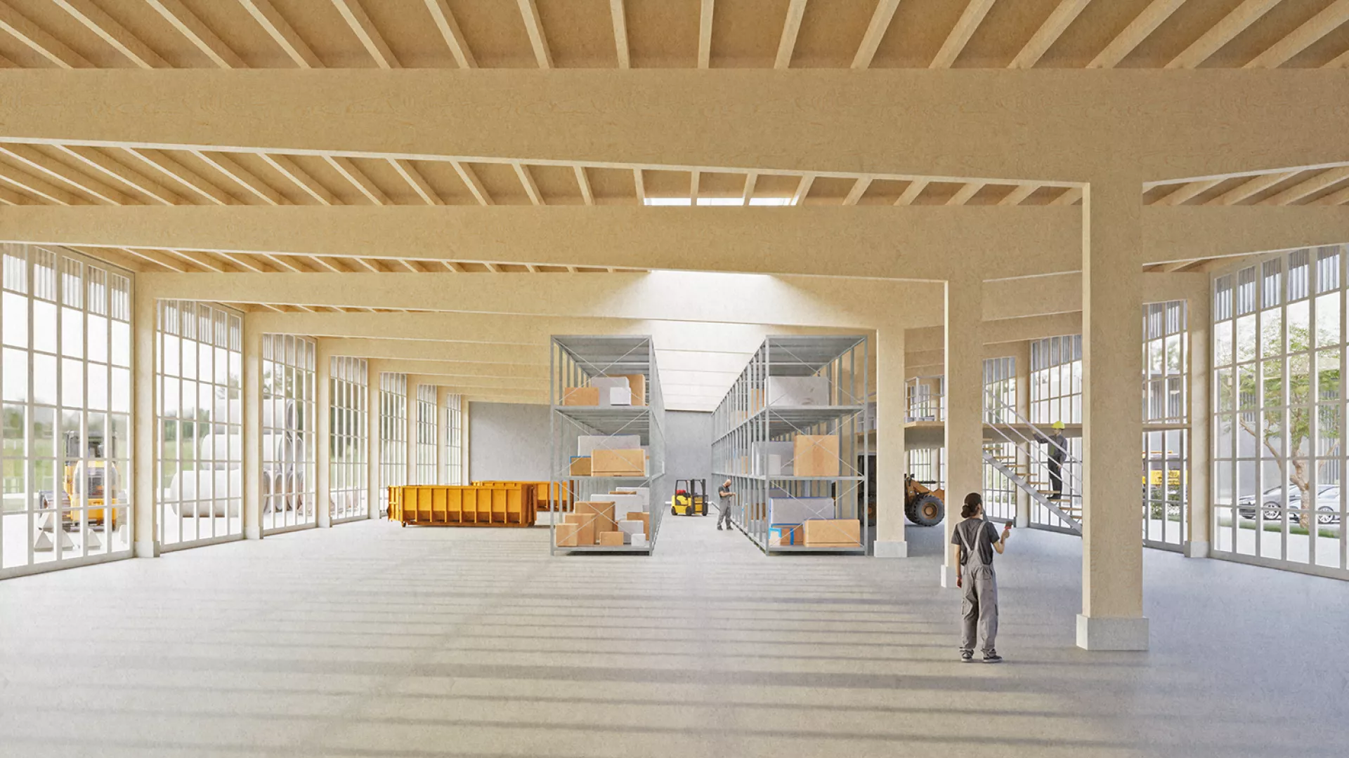 Image : vue intérieure du futur Centre d'entretien routier de Boudry (crédit: Julien Dubois Architectes SA).