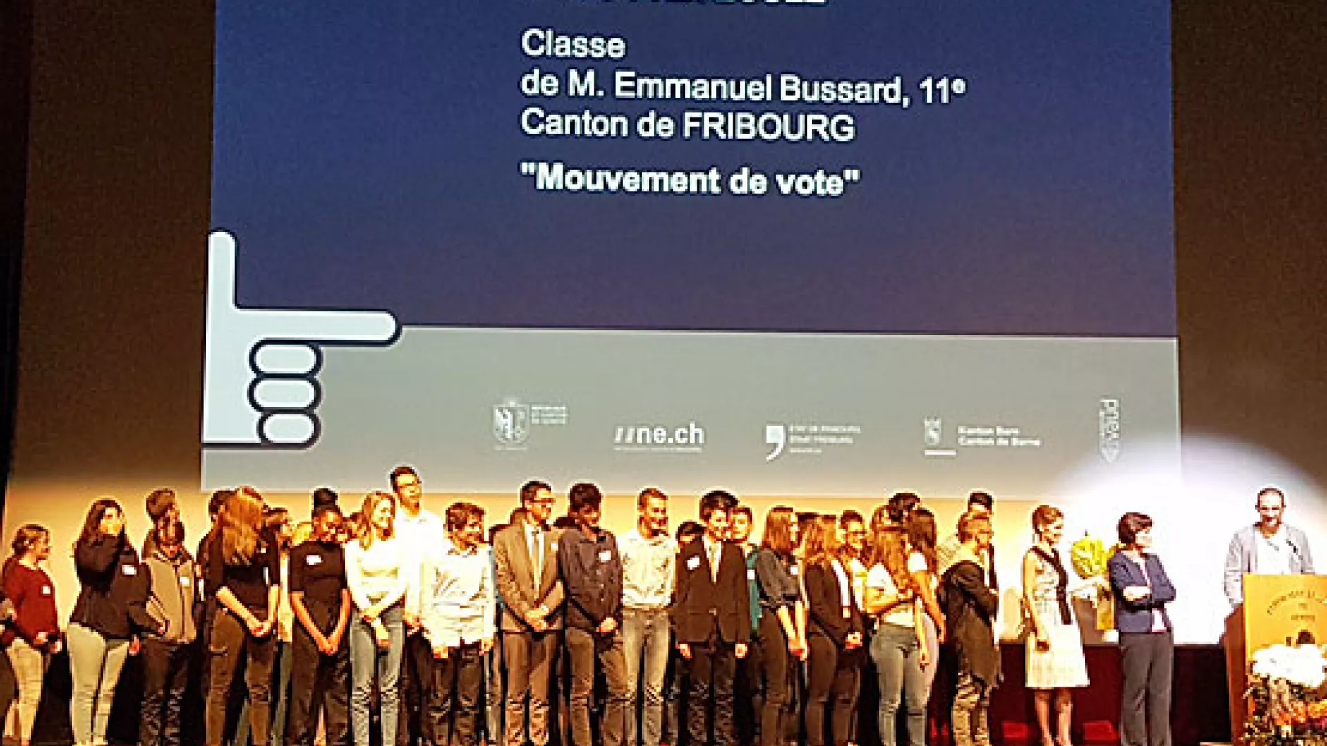 Le jury du prix école, composé notamment d'enseignant-e-s et de représentant-e-s des autorités scolaires, ainsi que de personnes en charges d'Institutions 3D et de journalistes de RTS Découverte, a attribué ce prix collectif aux jeunes de la classe de 11ème de M. Emmanuel Bussard du cycle d'orientation de la Veveyse à Châtel du canton de Fribourg pour le film « Mouvement de vote ».