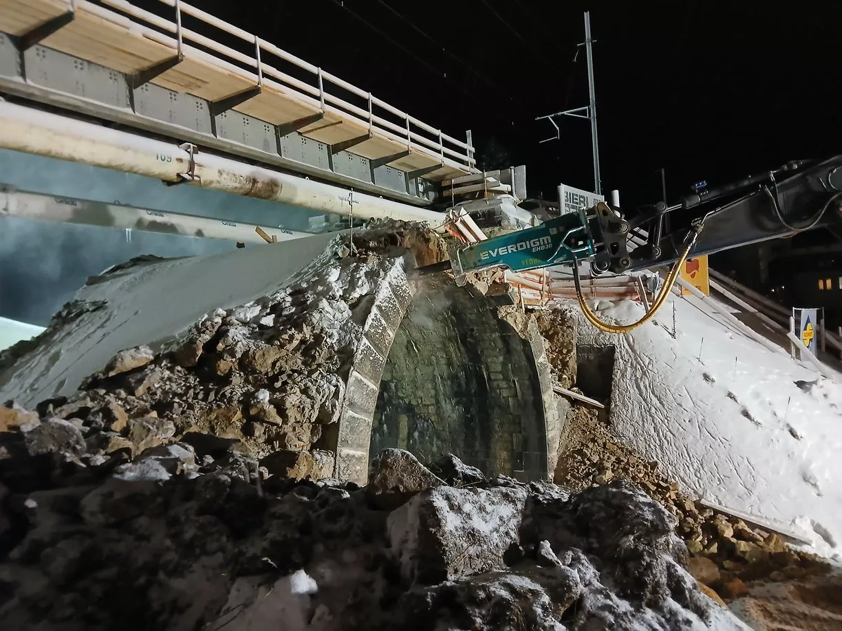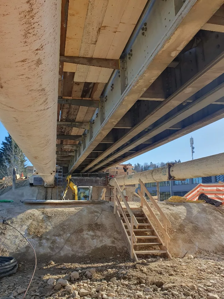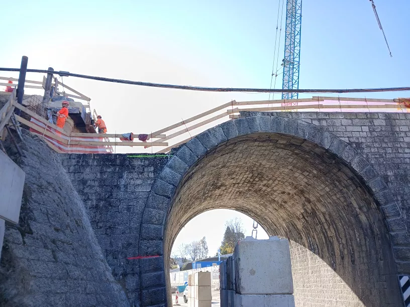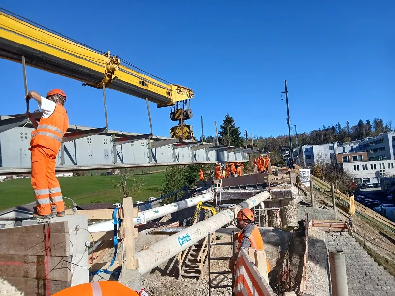 Tout d'abord, un pont provisoire CFF est posé au-dessus du passage supérieur des Petites Crosettes, lors d'une opération « coup de poing ». Les travaux se déroulent ensuite sous le pont provisoire, sans interrompre l'exploitation ferroviaire.
